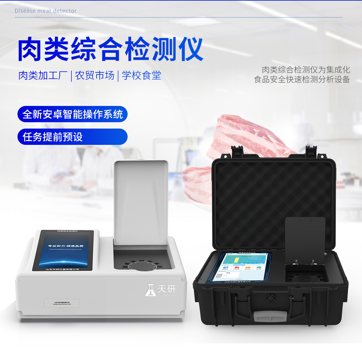肉類綜合檢測儀可快速檢測幾十種項(xiàng)目,包含各種獸藥殘留:抗生素類殘留、瘦肉精激素類殘留;病害肉診斷:肉類新鮮度、肉中組胺、揮發(fā)性鹽基氮;水產(chǎn)品安全篩查等現(xiàn)場的定性定量檢測。
