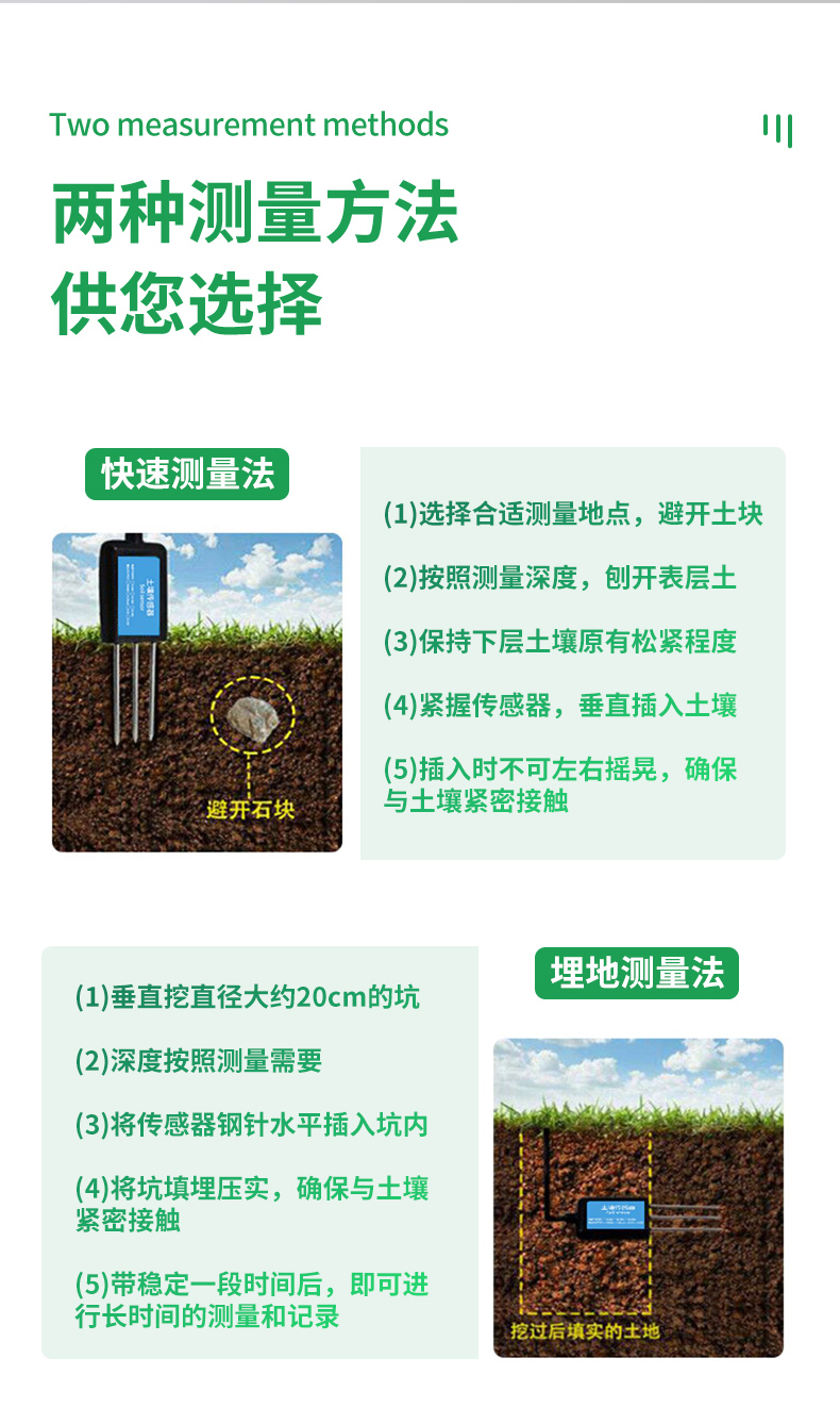 MEC10土壤水分/電導(dǎo)率/溫度傳感器性能穩(wěn)定靈敏度高,是觀(guān)測(cè)和研究鹽漬土的發(fā)生、演變、改良以及水鹽動(dòng)態(tài)的重要工具。通過(guò)測(cè)量土壤的介電常數(shù),能直接穩(wěn)定地反映各種土壤的真實(shí)水分含量。MEC10土壤水分傳感器可測(cè)量土壤水分的體積百分比,是符合目前**標(biāo)準(zhǔn)的土壤水分測(cè)量方法。適用于土壤墑情監(jiān)測(cè)、科學(xué)試驗(yàn)、節(jié)水灌溉、溫室大棚、花卉蔬菜、草地牧場(chǎng)、土壤速測(cè)、植物培養(yǎng)、污水處理、精細(xì)農(nóng)業(yè)等場(chǎng)合。