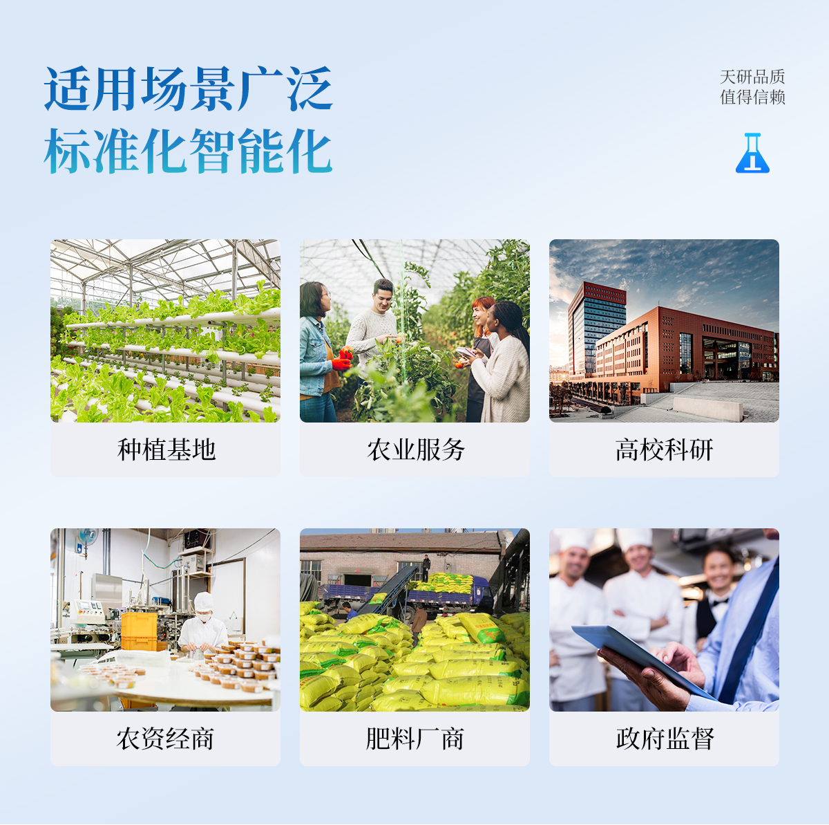 | 化肥養(yǎng)分:● 單質(zhì)化肥中的氮、磷、鉀; ● 復(fù)(混)合肥及尿素中的銨態(tài)氮、硝態(tài)氮、磷、鉀、縮二脲; | 有機(jī)肥養(yǎng)分:● 有機(jī)肥中速效氮、速效磷、速效鉀、全氮、全磷、全鉀、有機(jī)質(zhì),各種腐植酸、微量元素(鈣、鎂、硫、鐵、錳、硼、鋅、銅、氯、硅、鉬)等以及各種重金屬(鉛、鉻、鎘、汞、砷、鎳、鋁、氟、鈦、硒)。 |