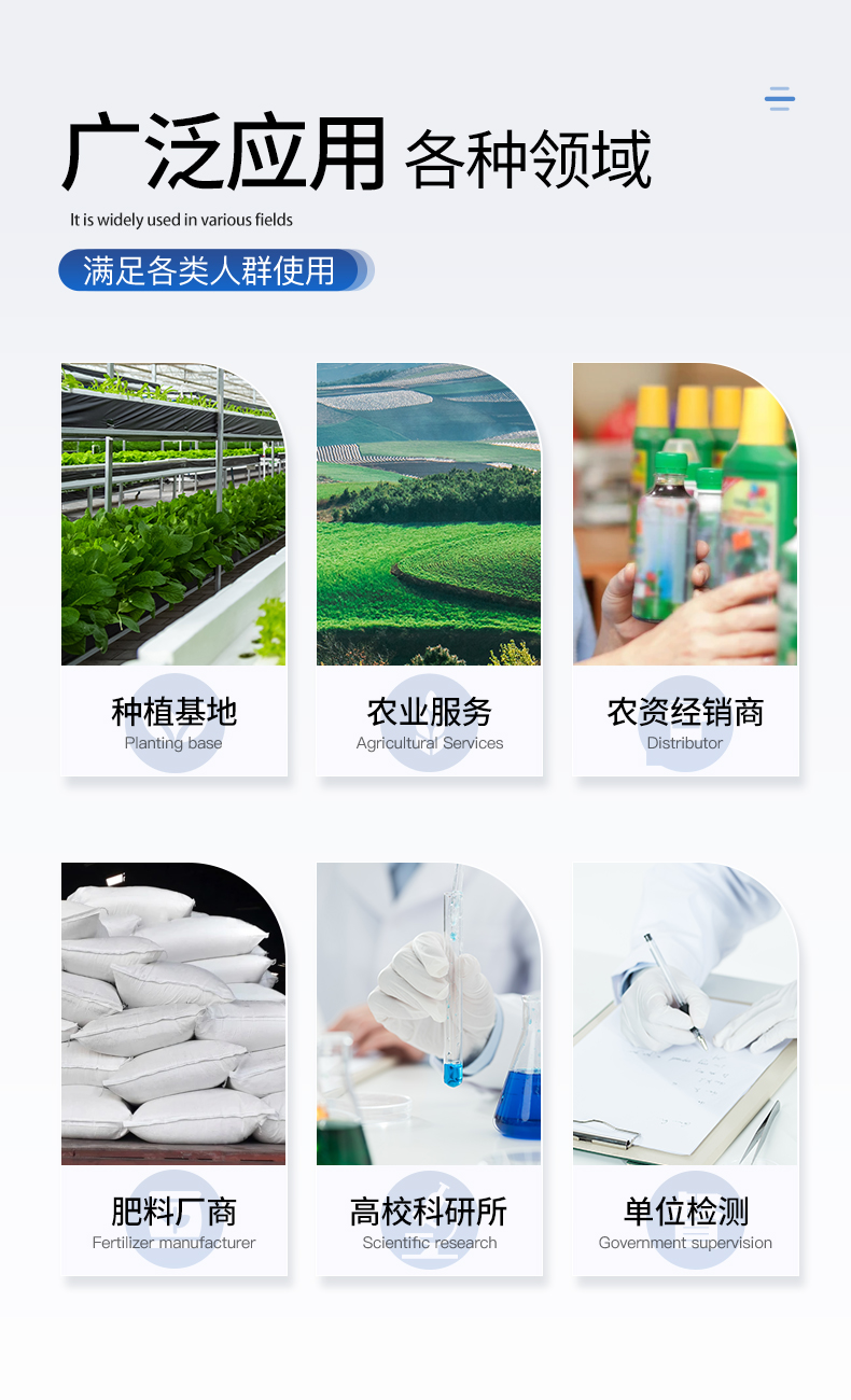 | 儀器測(cè)定項(xiàng)目:測(cè)定土壤、肥料、食品、蔬菜、水果中重金屬(鉛、砷、鉻、鎘、汞、鐵、鋅、錳、銅)。 | 儀器擴(kuò)展測(cè)試項(xiàng)目:儀器可以擴(kuò)展測(cè)定土壤、肥料養(yǎng)分含量。 |