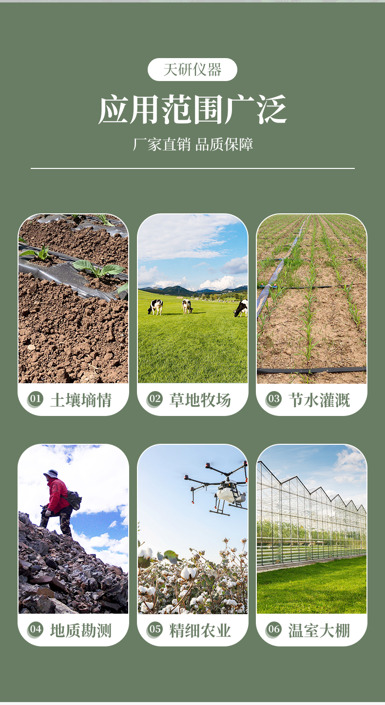 土壤水分溫度鹽分測(cè)定儀傳感器采用一體化結(jié)構(gòu)設(shè)計(jì),可快速準(zhǔn)確測(cè)量土壤中含水量、溫度和電導(dǎo)率(鹽分),可對(duì)多處樣地、不同土壤深度的水分含量溫度和鹽分進(jìn)行快速檢測(cè)和長(zhǎng)期連續(xù)監(jiān)測(cè)。廣泛應(yīng)用于土壤墑情檢測(cè)、旱作節(jié)水灌溉、精細(xì)農(nóng)業(yè)、林業(yè)、地質(zhì)勘探、植物培育、水利、環(huán)保等領(lǐng)域。