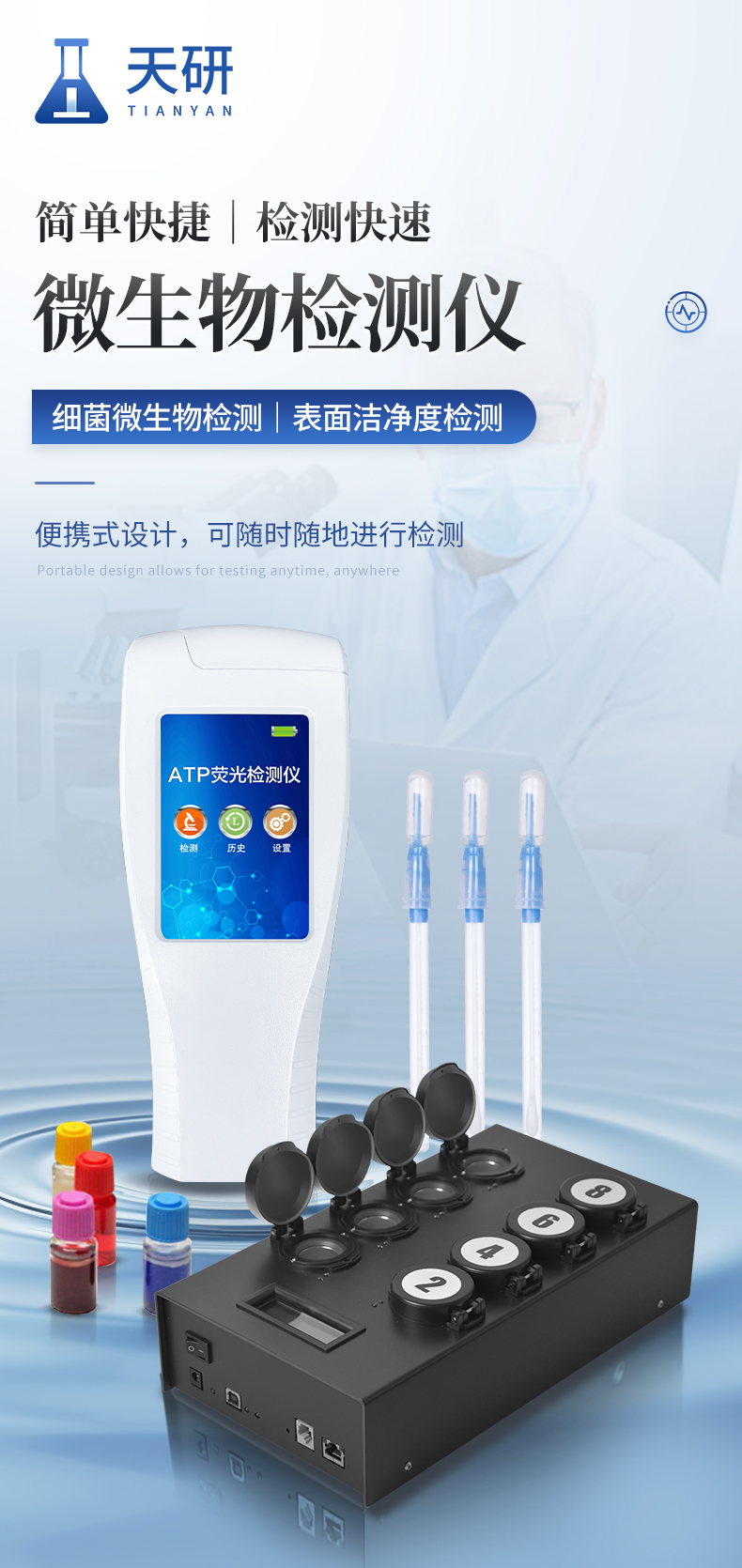天研ATP熒光檢測(cè)儀廣泛應(yīng)用于:細(xì)菌微生物檢測(cè)、醫(yī)藥衛(wèi)生、食品安全、市場(chǎng)執(zhí)法、表面潔凈度檢測(cè)、醫(yī)療防疫、水質(zhì)水政、生產(chǎn)線衛(wèi)生、工業(yè)水處理、環(huán)保檢測(cè)、海關(guān)出入境檢疫及其他執(zhí)法部門等多種行業(yè)。